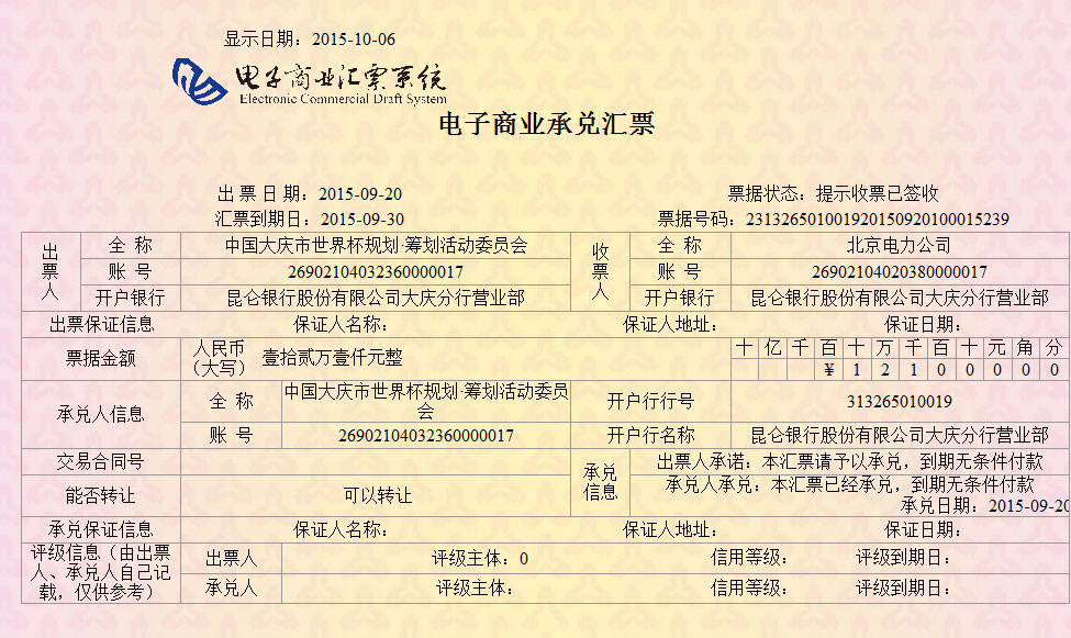 當(dāng)前位置:電子票據(jù) > 電子商業(yè)匯票正面信息