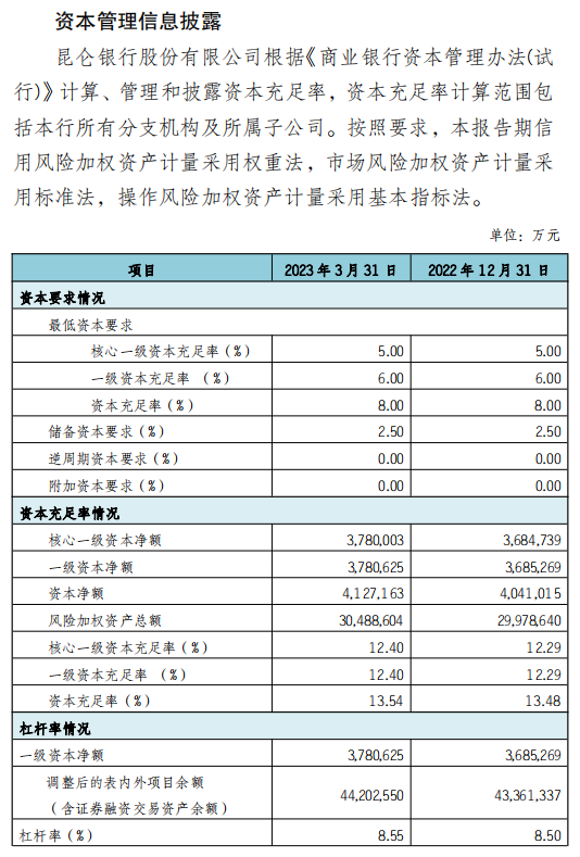 昆侖銀行股份有限公司2023年1季度信息披露 |