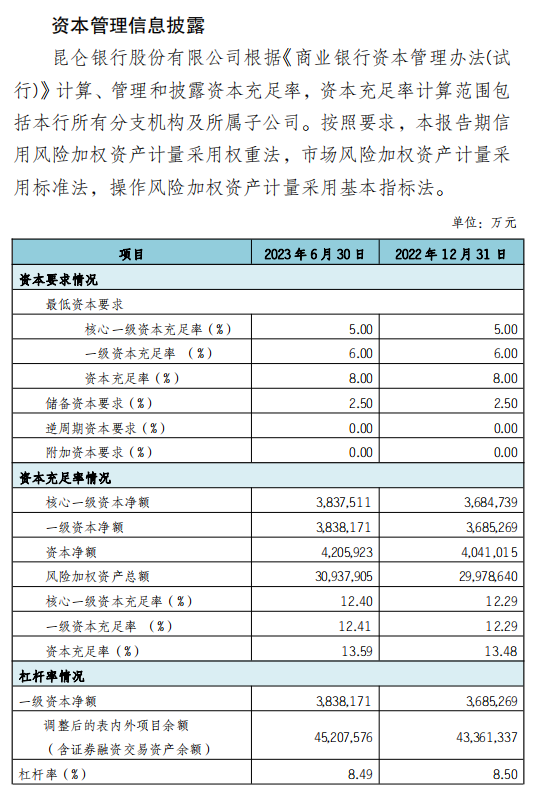 昆侖銀行股份有限公司2023年2季度信息披露 |
