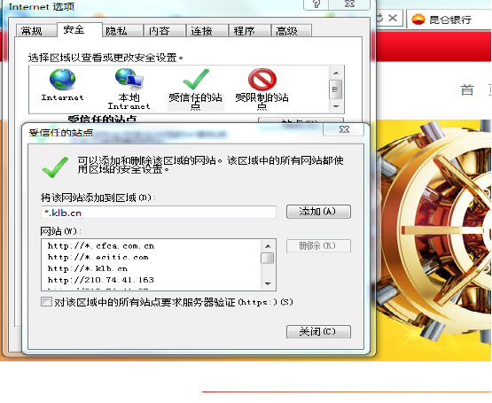一. 在驗證E盾證書界面,加載證書處的下拉框中有多個證書編號或顯示的證書編號與E盾背面的不符。 解決方法:如遇此類問題,請在驗證E盾界面的下拉框中選擇與E盾背面編號相同的證書編號即可正常使用。 二. 1.登錄時,系統(tǒng)會自動提示您升級本地控件,按照提示默認(rèn)操作后,安裝過程中遇到安裝不成功或安裝成功后不能使用。 2.驗證E盾密碼時,一直彈出安裝控件的提示,按照提示默認(rèn)操作后,無法成功安裝或安裝成功后不能使用。 3.驗證E盾密碼時,顯示“客戶端證書無效”或“未發(fā)現(xiàn)客戶端證書”。 解決方法:如遇以上三項問題,請先通過我行門戶網(wǎng)站下載“網(wǎng)銀輔助工具”,關(guān)閉所有瀏覽器(或重啟電腦后)使用該軟件“一鍵修復(fù)”進(jìn)行修復(fù)即可,具體操作如下: (1)鼠標(biāo)右鍵點擊以下快捷鏈接,選擇另存為,直接下載”網(wǎng)銀輔助工具”,(建議可選擇下載存放至“桌面”以便查找) (快捷鏈接:http://www.ynrtmy.com/kunlbank/resource/cms/2015/11/2015112715445023165.zip) ?。?)或登陸昆侖銀行主頁,點擊頂端的“電子銀行”頁面進(jìn)行下載; 進(jìn)入“電子銀行”頁面后,在頁面左下方點擊“更多”進(jìn)入“下載中心”; 進(jìn)入“下載中心”,右鍵點擊下載“網(wǎng)上銀行輔助工具”,選擇“目標(biāo)另存為”。(建議可選擇下載存放至“桌面”以便查找) 下載完成后找到2015112715445023165的壓縮文件進(jìn)行解壓安裝。 解壓安裝后,點擊打開寶石花圖標(biāo)的OnKeyAid_1.0.0.5文件,即可打開網(wǎng)銀輔助工具。 點擊“一鍵修復(fù)”,自動進(jìn)行修復(fù),完成后重新登錄進(jìn)行操作即可。 三. 1.安裝控件成功后,提示“數(shù)字簽名錯誤”。 2. 投產(chǎn)后做了證書展期的企業(yè)客戶,登錄時出現(xiàn)“無法顯示該網(wǎng)頁”的錯誤提示。 解決方法:如遇以上問題,請先將當(dāng)前瀏覽器關(guān)閉,重啟瀏覽器登錄進(jìn)行嘗試操作。如果仍提示“數(shù)字簽名錯誤”,請通過我行門戶網(wǎng)站下載安裝最新的e盾驅(qū)動程序。具體操作如下: ?。?)鼠標(biāo)右鍵點擊以下快捷鏈接,選擇另存為,直接下載”e盾客戶端管理工具”,(建議可選擇下載存放至“桌面”以便查找) ?。旖萱溄?http://www.ynrtmy.com/kunlbank/resource/cms/2015/11/2015112715433567946.zip) ?。?)或登陸昆侖銀行主頁,點擊頂端的“電子銀行”頁面進(jìn)行下載; 進(jìn)入“電子銀行”頁面后,在頁面左下方點擊“更多”進(jìn)入“下載中心”; 進(jìn)入“下載中心”,右鍵點擊下載“e盾客戶端管理工具”,選擇“目標(biāo)另存為”。(建議可選擇下載存放至“桌面”以便查找) 下載完成后找到2015112715433567946的壓縮文件進(jìn)行解壓安裝。 解壓安裝后,點擊打開以下圖標(biāo)進(jìn)行安裝。 安裝完成可看見寶石花圖標(biāo)的e盾客戶端管理工具 點擊“證書”,比對顯示的證書編號是否與e盾背面一致,點擊下方“注冊證書”。完成后重新打開瀏覽器登錄操作即可。 四. 密碼控件安裝不上,出現(xiàn)紅叉圖片或其他顯示。 解決方法:. 如遇以上問題,請先下載并安裝網(wǎng)銀輔助工具,進(jìn)行“一鍵修復(fù)”,具體操作如下: ?。?)鼠標(biāo)右鍵點擊以下快捷鏈接,選擇另存為,直接下載”網(wǎng)銀輔助工具”,(建議可選擇下載存放至“桌面”以便查找) ?。旖萱溄觝ttp://www.ynrtmy.com/kunlbank/resource/cms/2015/11/2015112715445023165.zip:) (2)或登陸昆侖銀行主頁,點擊頂端的“電子銀行”頁面進(jìn)行下載; 進(jìn)入“電子銀行”頁面后,在頁面左下方點擊“更多”進(jìn)入“下載中心”; 進(jìn)入“下載中心”,右鍵點擊下載“網(wǎng)上銀行輔助工具”,選擇“目標(biāo)另存為”。(建議可選擇下載存放至“桌面”以便查找) 下載完成后找到2015112715445023165的壓縮文件進(jìn)行解壓安裝。 解壓安裝后,點擊打開寶石花圖標(biāo)的OnKeyAid_1.0.0.5文件,即可打開網(wǎng)銀輔助工具。 點擊“一鍵修復(fù)”,自動進(jìn)行修復(fù),完成后重新登錄進(jìn)行操作即可。 若仍無法解決,請按以下操作進(jìn)行修復(fù): (1)打開IE瀏覽器,點擊“工具”-> “Internet選項”->“安全”->“受信任的站點” ->“站點”中,在“將該網(wǎng)站添加到區(qū)域中”內(nèi)輸入“*.klb.cn”(注意:須把“對該區(qū)域中的所有站點要求服務(wù)器驗證(https)”的復(fù)選框去掉),然后依次點擊“添加”、“確定”如下圖所示: (2)、打開IE瀏覽器,將IE的Internet選項的安全級別設(shè)置成默認(rèn),之后點擊“工具”->“Internet選項”->“安全”->“自定義級別”,將其中的“對標(biāo)記為可安全執(zhí)行腳本的ActiveX控件執(zhí)行腳本”、“下載已簽名的ActiveX控件”、“運行ActiveX控件和插件”分別設(shè)為“啟用”,然后關(guān)閉所有的瀏覽器窗口重新進(jìn)行登錄,系統(tǒng)將自動給您安裝密碼控件,保證登錄的安全性。設(shè)置參考下圖: 五. 密碼控件可以安裝成功但鍵盤無法輸入只能用軟鍵盤輸入。 解決方法:. 如遇以上問題,應(yīng)為IE權(quán)限問題。請按照以下步驟操作: ?。?)點擊開始菜單->所有程序。參見下圖: (2)鼠標(biāo)停放在Internet Explorer圖標(biāo)上->點擊右鍵選擇“以管理員身份運行”參見下圖: “如經(jīng)以上方法問題仍沒有解決,請咨詢95379?!?/p> |